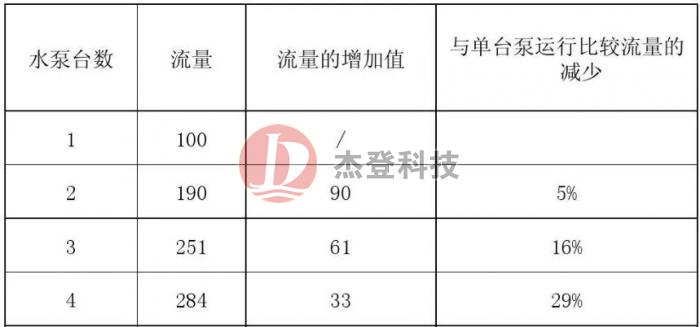 水泵并联运行时,流量有所衰减;当并联台数超过3台时,衰减尤为厉害。故建议: